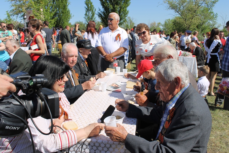 Далее для ветеранов и жителей Белокалитвинского района выступила фронтовая агитбригада, была предложена фронтовая каша и боевые сто грамм.