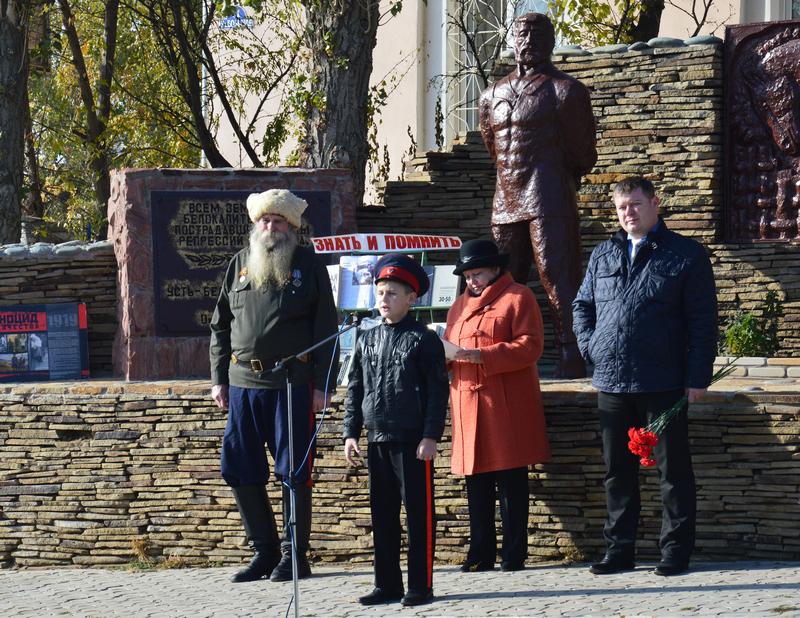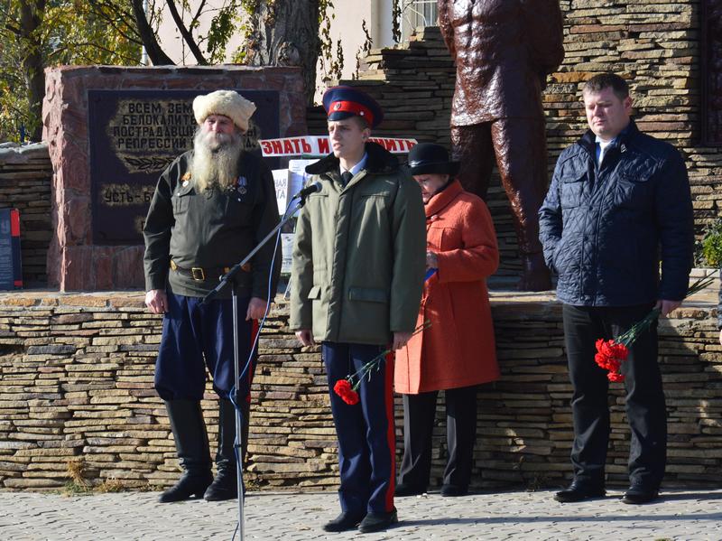 С призывом всегда помнить о тех, кто отдал свою жизнь за правду, за Отечество, за народ и свободу, выступили член совета стариков юрта Иван Колодкин и главный хранитель Белокалитвинского историко-краеведческого музея Николай Пичкур, рассказавшие об исторических событиях прошлых лет, когда казаки стали жертвой невиданного по размаху террора, террора против своего народа. Память погибших почтили минутой молчания и выпустили в небо шары.