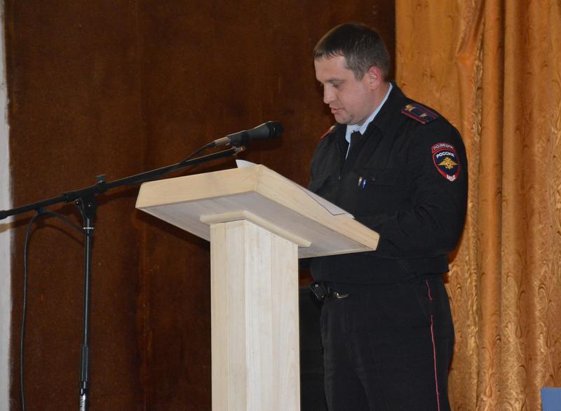 Старший участковый уполномоченный полиции, майор полиции Владимир Баборыкин проинформировал о деятельности Отдела МВД России по Белокалитвинскому району на территории поселения, отметив, что жителям следует проявлять активность и сообщать о каких-либо противоправных действиях и соблюдать бдительность в связи с участившимися террористическими актами.