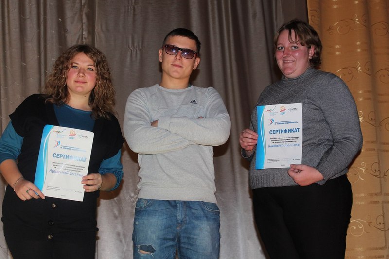 В итоговом мероприятии Регионального молодежного проекта «Я - успешный предприниматель» приняли участие: Финаева Татьяна (специалист комитета по ФКС и делам молодежи), Романюк Степан и Горбатова Анастасия (студенты БГИТ).