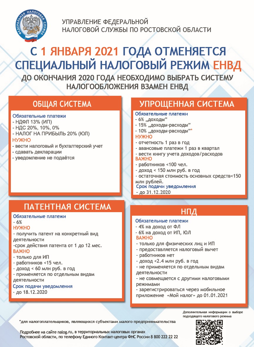 В соответствии с Федеральным законом от 29.06.2012 № 97-ФЗ система налогообложения ввиде единого налога на вмененный доход (ЕНВД) с 1 января 2021 года не применяется.