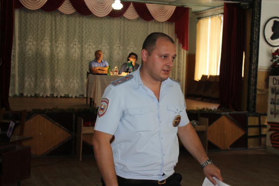 С отчетом об оперативной обстановке на территории поселения за I полугодие 2018 года выступил участковый уполномоченный полиции, старший лейтенант полиции Сергей Самойлов, призвал жителей оказывать содействие отделу полиции в раскрытии преступлений, а также напомнил родителям о надлежащем контроле за своими детьми в летний период каникул.