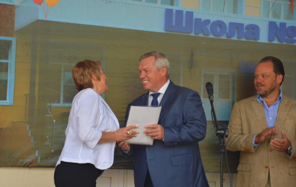 Сегодня, 1 сентября, в День знаний Губернатор области Василий Голубев и глава Администрации Ольга Мельникова побывали на линейке в школе №8 поселка Шолоховский и поздравили учащихся с началом нового учебного года. Губернатор сам был учеником этой школы, которую закончил более сорока лет назад. В торжественной линейке приняли участие депутат Государственной Думы РФ Александр Шолохов, первый заместитель Губернатора области Игорь Гуськов, министр общего и профессионального образования области Лариса Балина.