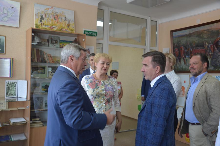 После торжественной линейки Василий Голубев посетил уроки знаний в первом и одиннадцатом классах и побывал в школьном литературно-краеведческом музее «Боян», созданный учителем истории, краеведом, писателем Петром Иосифовичем Ковешниковым.
