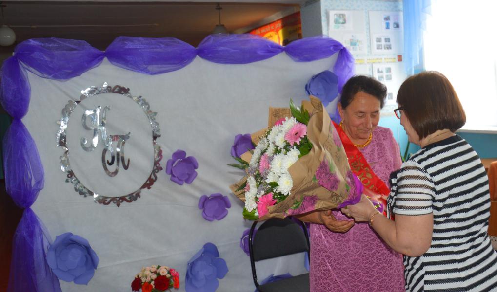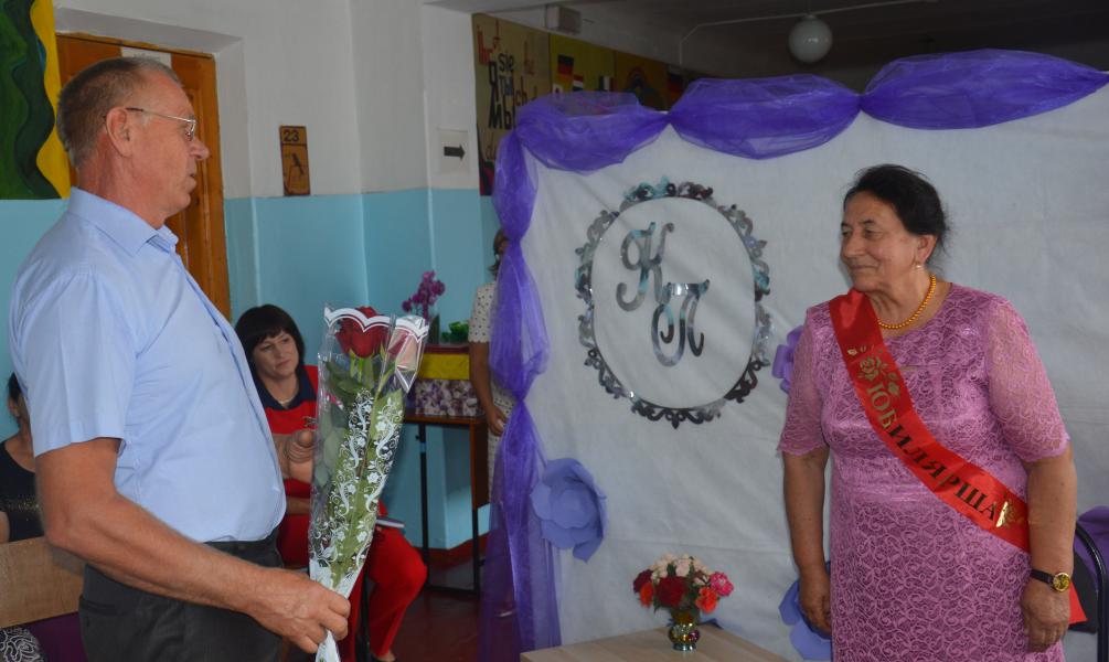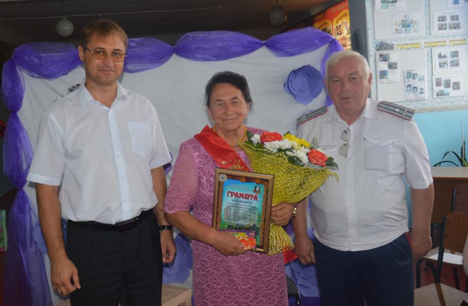 Директор Ленинской казачьей школы Клавдия Петровна Сологуб приняла поздравления от главы Администрации района Ольги Мельниковой