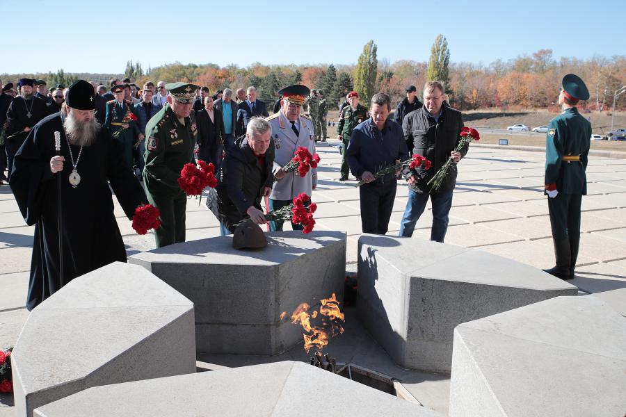 Губернатор поблагодарил представителей российского студенчества за участие в памятном событии и рассказал главе российских студотрядовцев о том, что на площадке музейного комплекса продолжится озеленение. На аллее Памяти будут высажены 12 видов сирени маршалов Победы. Через дорогу к комплексу построят пешеходный переход. Для жителей близлежащего села Самбек будет проложен новый водопровод