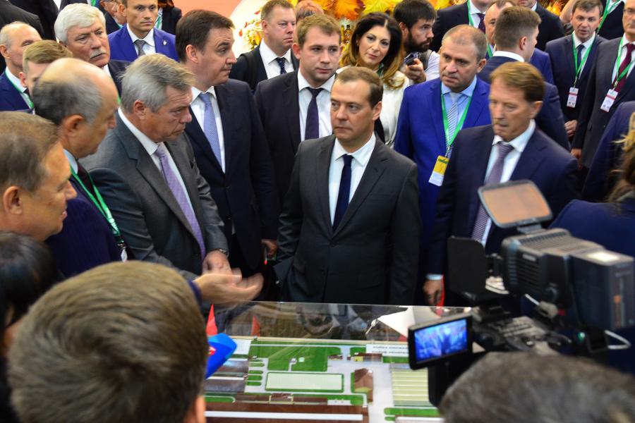 Василий Голубев презентовал Дмитрию Медведеву крупнейшие проекты в сфере АПК и логистики. Губернатор рассказал главе правительства России о проектах, которые Ростовская область представила на форуме и планах по созданию в Ростовской области крупного логистического комплекса «Росагромаркет», а также по открытию мощной молочно-товарной фермы. Оба проекта Дмитрий Медведев назвал чрезвычайно важными для развития отечественного сельхозпроизводства