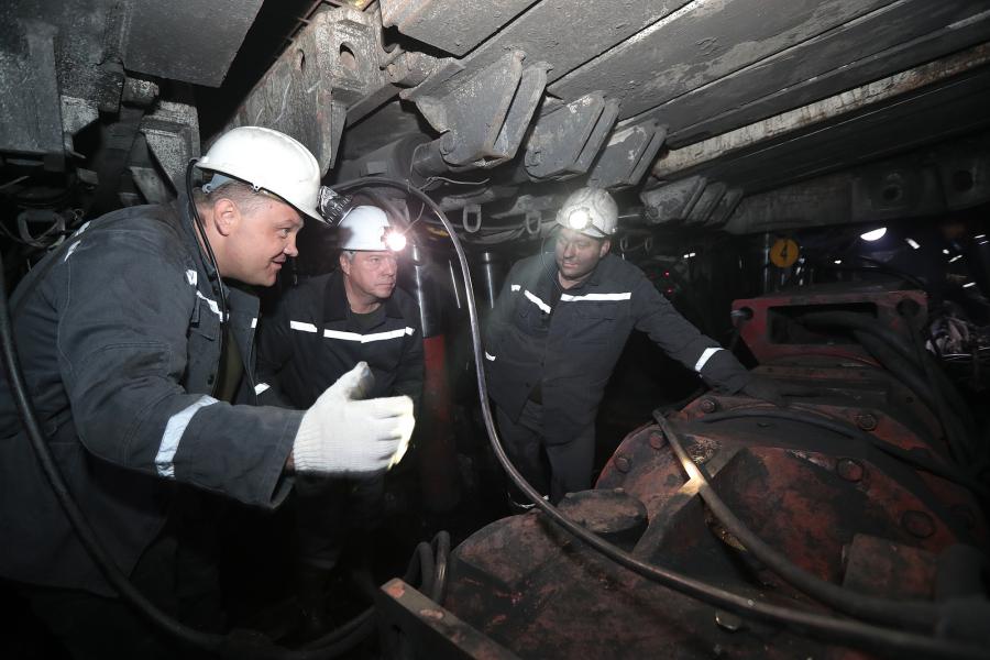Губернатор области Василий Голубев и глава Администрации района Ольга Мельникова спустились в новую лаву на ООО «Шахтоуправление Садкинское»