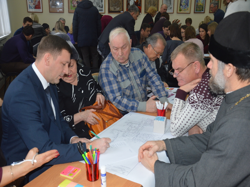 Далее участники разделились на несколько команд, которым была выдана топосъемка и набор стикеров с изображением ключевых объектов благоустройства и приступили к обсуждению проектов. Результаты работы проектной мастерской будут переданы архитекторам