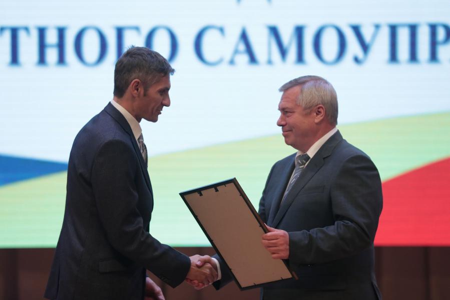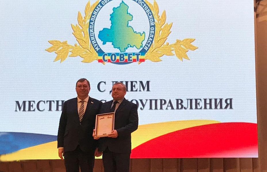 В ходе торжественного собрания Василий Голубев подвел итоги областного конкурса «Лучшее поселение Ростовской области» в 2018 году. Городские и сельские поселения, принимающие участие в конкурсе, были разделены на две категории: с численностью населения до трех тысяч человек и свыше трех тысяч. Диплом победителя во второй категории Василий Голубев вручил главе Администрации Шолоховского городского поселения Михаилу Казакову.