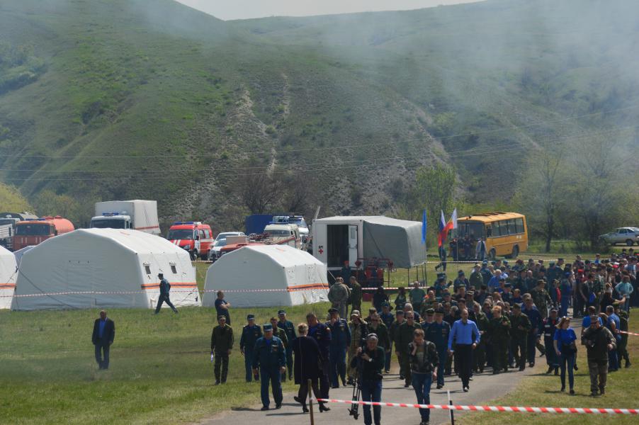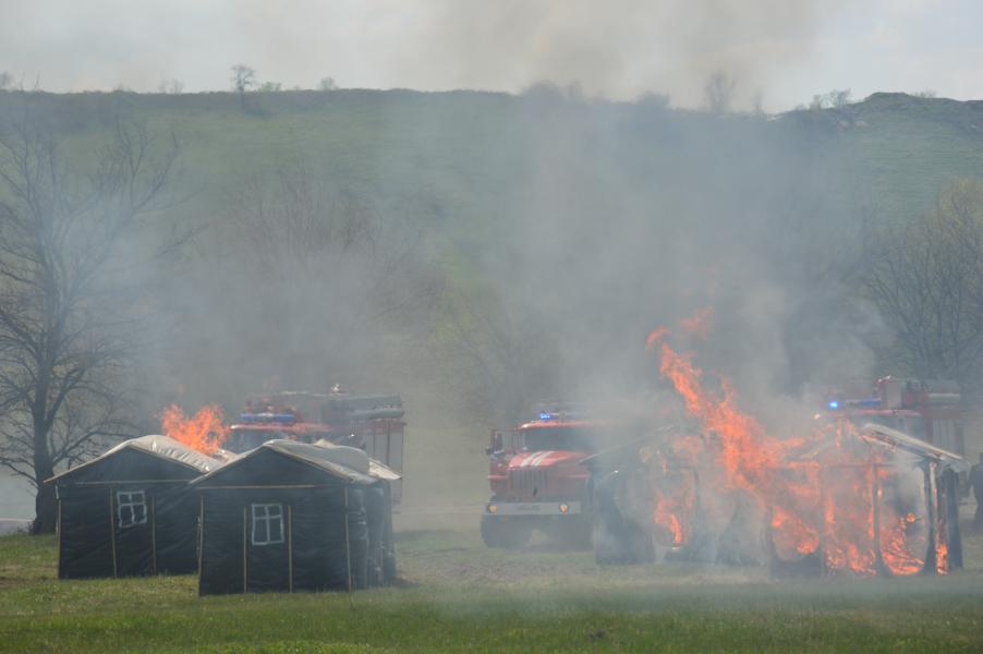 В ходе учений были развернуты несколько площадок, на которых продемонстрированы - тушение ландшафтного пожара, пожара в лесном массиве, сельских населенных пунктах, в труднодоступных местах с воды. Кроме того, организован водозабор на месте проведения работ по тушению природных пожаров и контролируемое выжигание сухой растительности. Участники учений смогли увидеть функционирование лагеря жизнеобеспечения группировки РСЧС в зоне чрезвычайной ситуации. В ходе учений был продемонстрирован весь цикл спасения людей и борьбы с огнем: обнаружение, локализация, ликвидация очага возгорания. Были показаны технические возможности снаряжения и техники, находящихся в эксплуатации пожарно-спасательных подразделений Ростовской области. К ликвидации чрезвычайной ситуации были привлечены около 50 единиц пожарной техники, 2 вертолета, 1 самолет, более 200 человек личного состава.