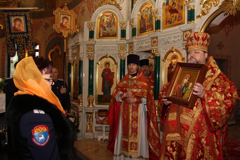 За богослужением молились глава Администрации Шолоховского городского поселения Михаил Казаков, воспитанницы Мариинской гимназии, прихожане храма. По окончании божественной литургии епископ Корнилий преподнес в дар директору филиала кадетской школы (Мариинской гимназии ГБОУ РО «БККК») Наталье Войновой икону Пресвятой Богородицы, именуемой Казанская. Воспитанницам гимназии по благословению владыки были вручены иконки Пресвятой Богородицы и сладкие подарки.