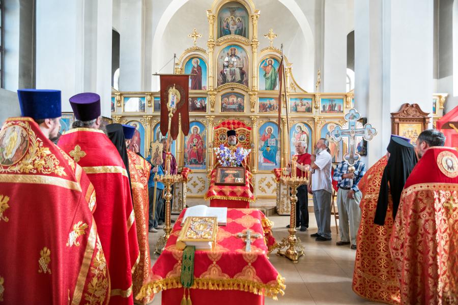 Завершился крестный ход богослужением в Храме Державной Иконы Божией Матери, которое провели участвовавшие в нем священнослужители