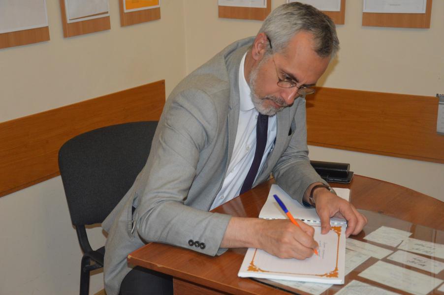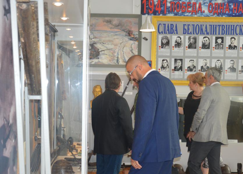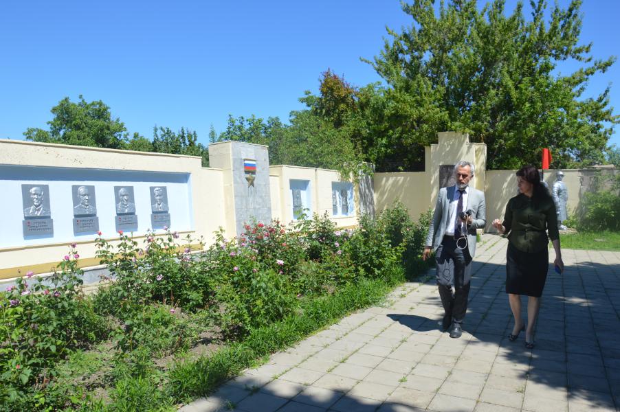 Далее сотрудники Южного научного центра РАН осмотрели экспозиции музея и оставили памятную запись в Книге отзывов, возложили цветы к стеле памяти погибших в концлагере на территории металлургического завода, ознакомились с документами Великой Отечественной войны в архивной службе Администрации района.