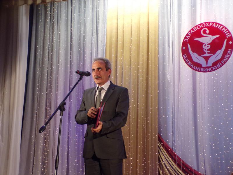 С благодарностью за труд к медицинским работникам обратились председатель Собрания депутатов района Сергей Харченко, глава Администрации Белокалитвинского городского поселения Сергей Сягайло. Главный врач «Центральной районной больницы» Галина Федорченко выразила слова признательности главе Администрации района Ольги Мельниковой за внимательное отношение к районному здравоохранению. Много поздравлений, в том числе и музыкальных, прозвучало в адрес виновников торжества. В системе здравоохранения района трудятся высококлассные специалисты, опытные, преданные своему делу люди. Многие отмечены государственными и областными наградами, имеют ученую степень и звание