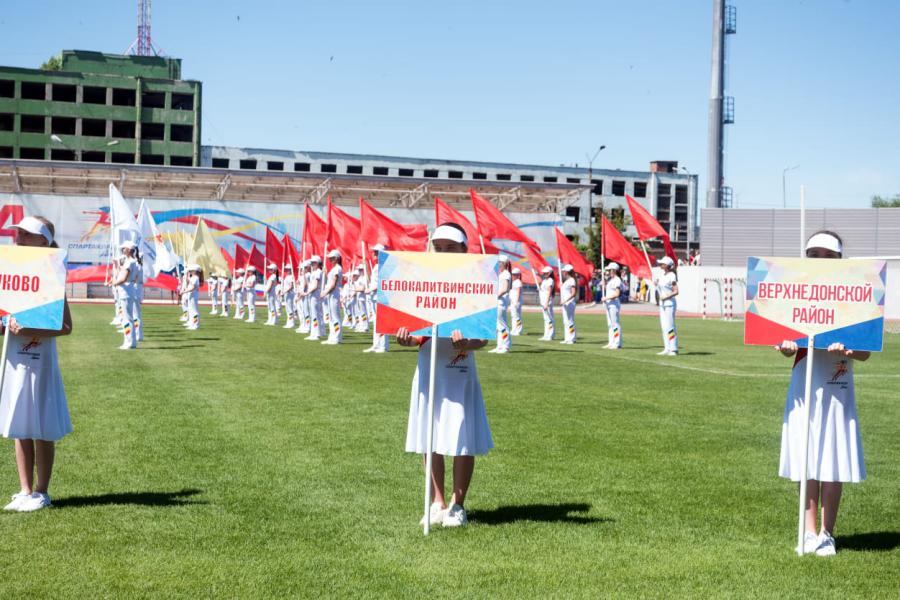 Единую команду района представили глава администрации Белокалитвинского района Ольга Мельникова и спортсмены-участники по 18-ти видам программы: армрестлинг, волейбол (мужчины, женщины), гиревой спорт, инвалидный спорт (шахматы), легкая атлетика, мини-футбол, настольный теннис, плавание, рыболовный спорт, соревнования спортивных семей, уличный баскетбол, шахматы, шашки, фланкировка казачьей шашкой, перетягивание каната, пляжный волейбол и выполнение нормативов ГТО для руководителей и начальников отделов администраций муниципальных образований.