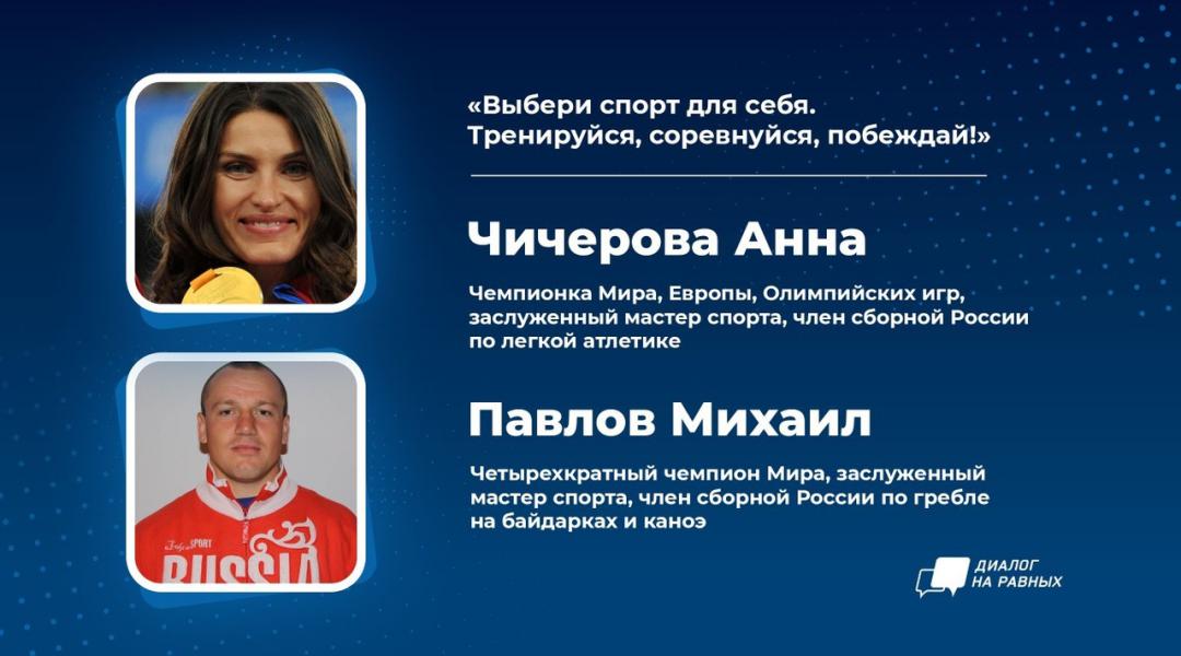 В рамках празднования Дня города служба по физической культуре, спорту и делам молодежи Администрации Белокалитвинского района в Центре культурного развития организовала «Диалог на равных» с участием наших земляков-выдающихся спортсменов. В течение встречи Олимпийская чемпионка, восьмикратная чемпионка мира и Европы, заслуженный мастер спорта России, член сборной России по легкой атлетике Анна Чичерова и четырехкратный чемпион мира по гребле на байдарках и каноэ, чемпион Европы, заслуженный мастер спорта России, член сборной России по гребле на байдарках и каноэ Михаил Павлов рассказывали детям о своих победах и падениях, отношениях с тренерами, наставниками и соперниками. Присутствующие задавали спортсменам вопросы о детских мечтах, учебе в школе и увлечениях. Именитые спортсмены пожелали детям упорства в достижении целей, успешной учебы и реализации заветной мечты. По окончании диалога участники и зрители сделали совместную фотографию