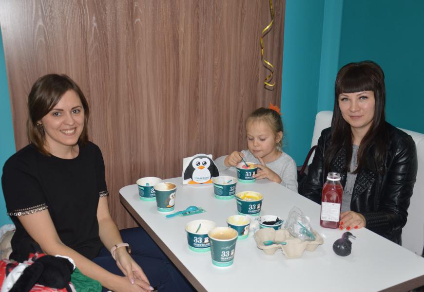 В Белой Калитве свои двери для юных белокалитвинцев и их родителей распахнуло кафе «33 пингвина», относящееся к крупнейшей российской сети. Кафе встретило всех желающих большой коллекцией натурального мороженого и фирменными десертами, уютной современной атмосферой. На входе гостей праздника встречал символ кафе - пингвин, с которым дети с интересом играли.