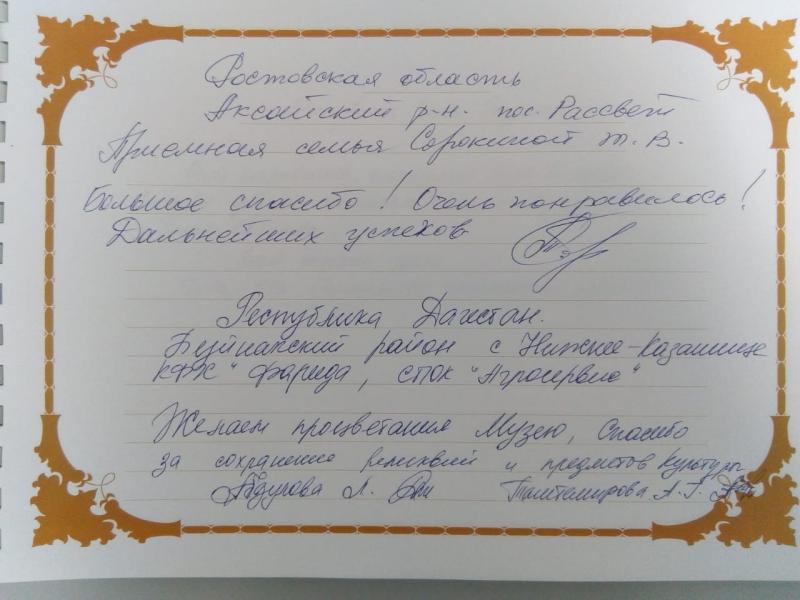 На белокалитвинской земле участниц форума встретила глава Администрации района Ольга Мельникова. По доброй традиции программу мероприятий начала молитва о семье, которую отслужил настоятель Введенского храма протоиерей Владимир Гноевой. Далее знакомство с районом продолжилось в историко-краеведческом музее, где на обзорной экскурсии гостям рассказали об основных этапах становления Белой Калитвы и наиболее ярких достопримечательностях города. Участники форума отметили богатую коллекцию экспонатов, получили много интересной информации, вручили сувениры и оставили теплые отзывы о посещении музея.