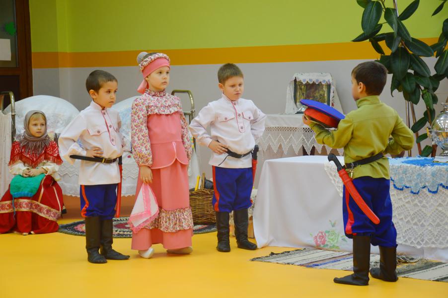 Ольга Мельникова отметила, что воспитание юных казачат-белокалитвинцев начинается с детского сада. В настоящее время в Белокалитвинском районе работают 14 детских садов со статусом «казачье». Как детям прививают любовь к казачьей культуре и традициям, делегаты смогли наглядно увидеть в детском саду «Садко», где их встретили малыши с хлебом-солью, а затем представили театрализованную постановку «Проводы казака в армию». Депутат Государственной Думы Российской Федерации Владимир Плотников подарил казачатам красочные картины и отметил, что радует глаз не только сам замечательно построенный детский сад, но и ребята - яркие и талантливые. Действительно, в «Садко» созданы все необходимые помещения соответственно функциональным назначениям, а также имеются два дополнительных зала для организации деятельности с детьми, логопедический кабинет для занятий детей с тяжелыми нарушениями речи и кабинет психолога. Следует отметить, что, за последние годы в Белокалитвинском районе сделан серьезный объем работ для повышения доступности дошкольного образования. Выполняя поручение Губернатора области полностью снята проблема очередности.