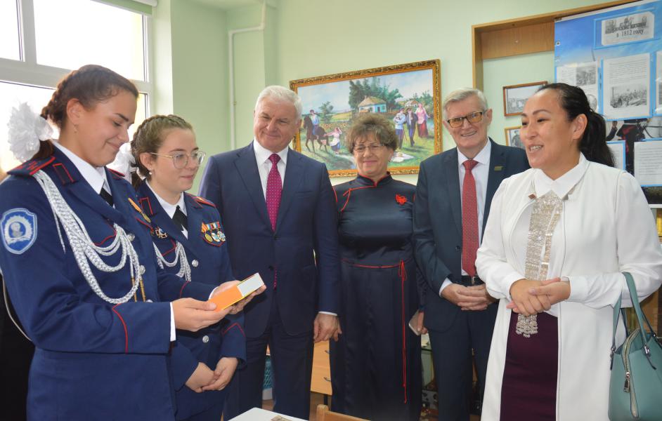 Не оставило равнодушным гостей знакомство с «Белокалитвинским Матвея Платова казачьим кадетским корпусом». Директор Владимир Диденко рассказал, как устроен уклад жизни кадета, показал основные помещения, где ребята учатся, занимаются творчеством, физической подготовкой и отдыхают. Глава Администрации района Ольга Мельникова подчеркнула, что корпус - гордость нашей территории и был два раза удостоен переходящего знамени Президента Российской Федерации на звание «Лучший казачий кадетский корпус РФ». Высокую оценку деятельности корпуса дали депутат Государственной Думы Российской Федерации Владимир Плотников, член Общественной палаты РФ Александр Шипулин, министр сельского хозяйства и продовольствия Ростовской области Константин Рачаловский. Воспитанники корпуса продемонстрировали навыки фланкировки, с особым патриотизмом исполнив песни о родине, казачьи песни и зажигательные танцы.