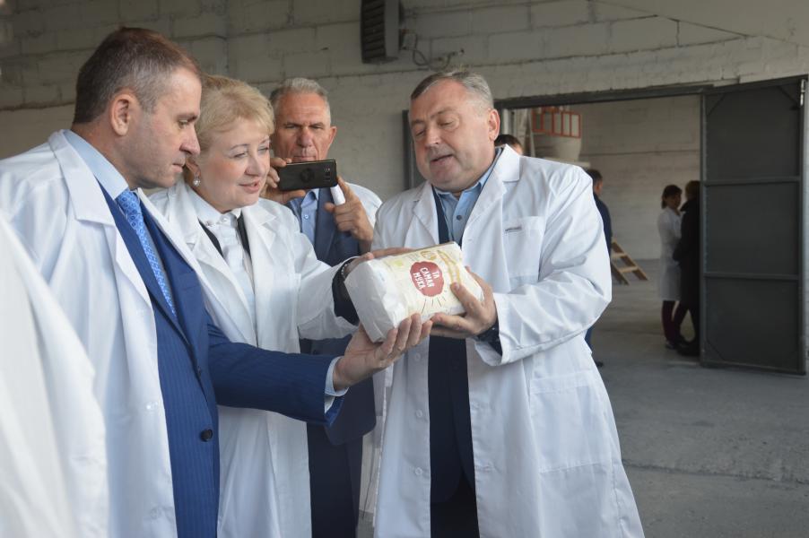 Генеральный директор предприятия Вячеслав Рыжкин и сотрудники мельничного комплекса встретили гостей свежим хлебом из собственной муки и солью. Вячеслав Рыжкин поделился идеей создания такого цеха, показал основные рабочие помещения, оборудование и пробную партию продукции, а также рассказал о нюансах технологического процесса, источниках зерна и планах по продвижению товара на рынок. Важно, что в настоящее время ООО «Альтернатива» принимает участие в добровольной сертификации «Сделано на Дону».