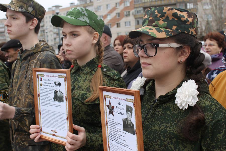 Нина Баран, мать Николая Баран, погибшего в Афганистане, пожелала молодому поколению мужества и стойкости духа, призвала быть достойными памяти тех, кто защищал Родину и быть готовыми в случае необходимости также встать на защиту своих родных и поблагодарила присутствующих за сохранение памяти о солдатах, выполнивших свой интернациональный долг в Афганистане. Пусть короткая жизнь и подвиг наших земляков станут для всех нас нравственным уроком, уроком долга и чести. На территории сквера установлен монумент и аллея с портретами 11 белокалитвинцев, погибших в Афганистане. Проникновенно была исполнена «Вахта памяти» учащимися школы № 8 поселка Шолоховский и школы №2 г.Белая Калитва, в которых учились воины-афганцы Сергей Вчерашнев и Александр Лащук.