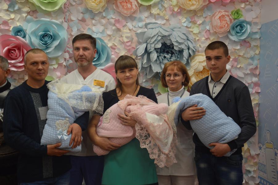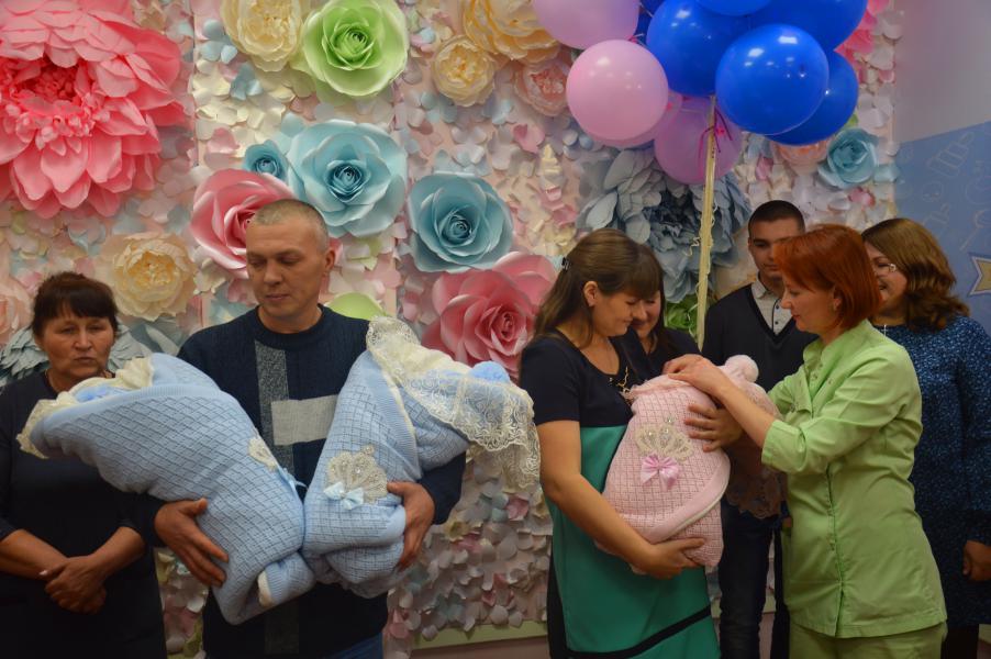 Глава Администрации района поздравила родителей и отметила, что этот случай достаточно уникальный и редкий. Это первая тройня за последние 25 лет! «Пусть дети растут здоровыми и крепкими на радость родителям!», - пожелала Ольга Мельникова и вручила сертификат на 130 тысяч рублей для приобретения детской коляски. Поздравительные слова и теплые пожелания от имени Губернатора области родителям передала министр здравоохранения Татьяна Быковская. В этот торжественный день встретить малышей приехали не только бабушки и дедушки, но еще и старший брат Роман. Мама Анна поблагодарила за внимательное отношение, поддержку и слаженную работу коллектив Перенатального цента.