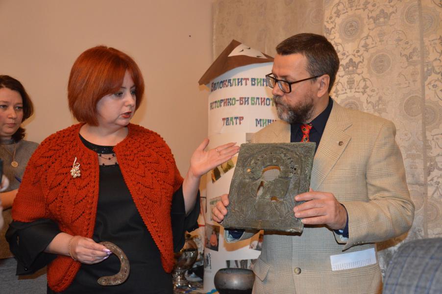 Директор музея Валентин Хлебнов выразил благодарность главе Администрации района и белокалитвинцам, благодаря которым коллекции становятся богаче и разнообразнее. Во многом благодаря нашим землякам, за 20 лет работы музея, удалось собрать более двадцати тысяч музейных предметов основного и научно-вспомогательного фондов. В Почетную Книгу будут вписаны имена и фамилии всех дарителей