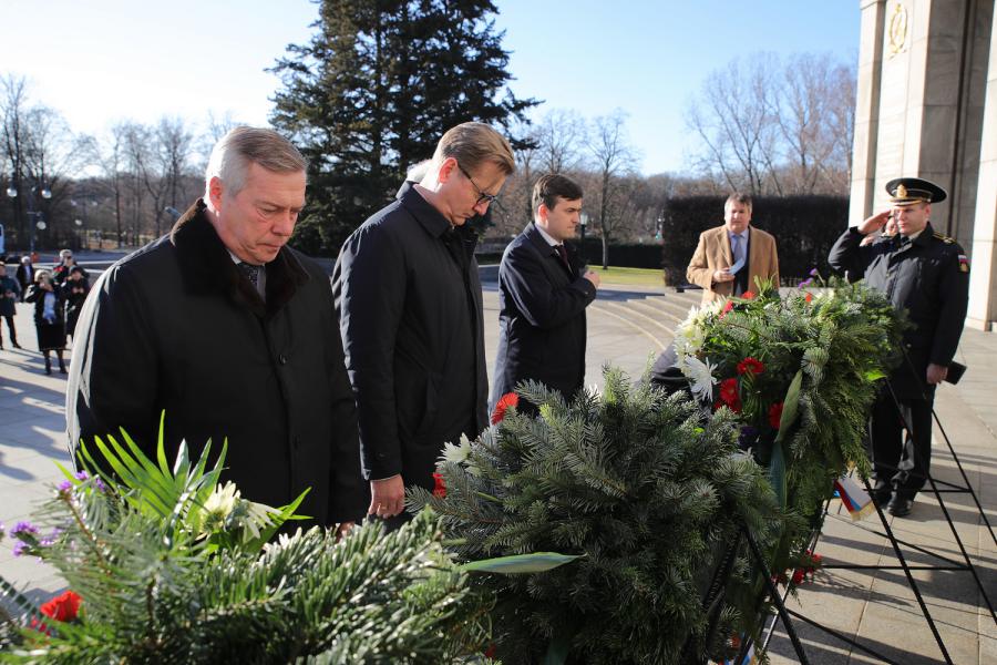 Кроме этого, делегация Ростовской области вместе с послом Российской Федерации в ФРГ Сергеем Нечаевым почтили память советских солдат и возложили цветы к мемориалу павшим советским воинам в берлинском парке Тиргартен