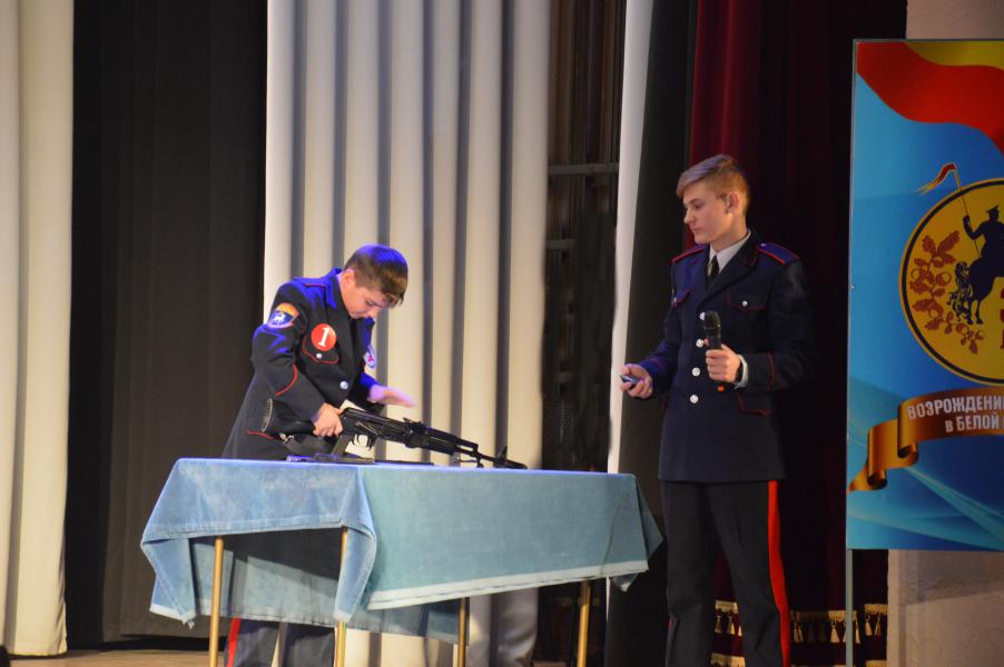 Ребята рассказали о воинской доблести своих предков и семейных традициях, продемонстрировали навыки в сборке-разборке автомата Калашникова и фланкировке, ответили на вопросы интеллектуальной викторины по знаниям истории родного края. Завершил программу конкурс «Вальс Победы», посвященный 75-й годовщине Великой Победы.