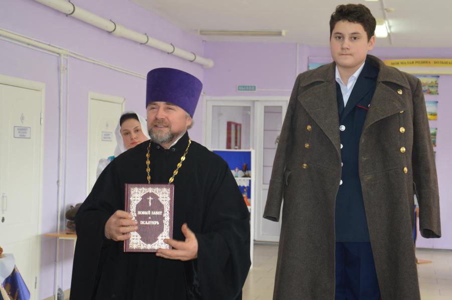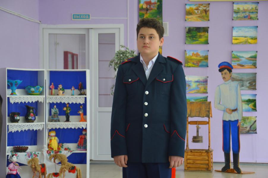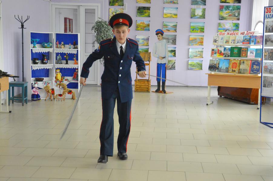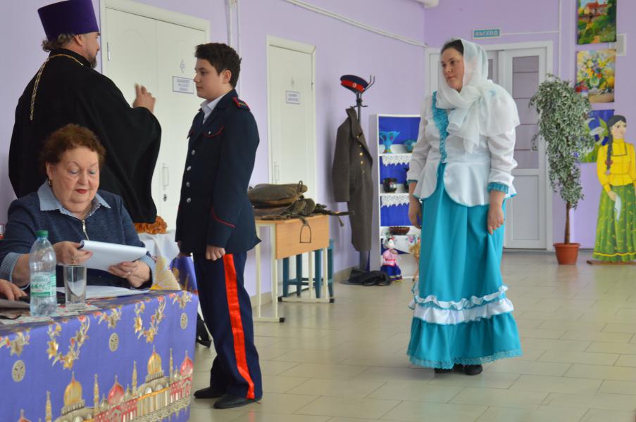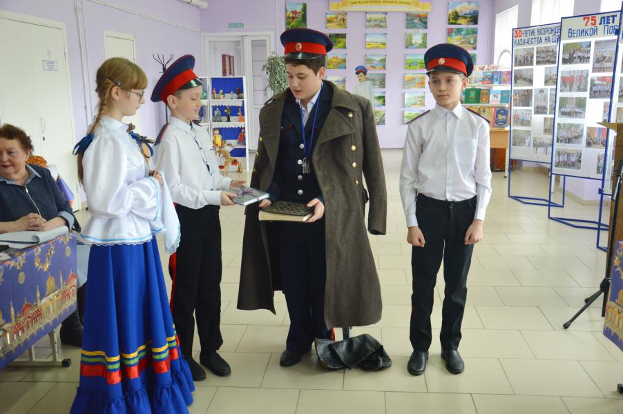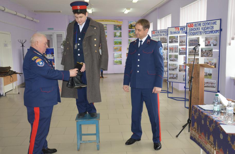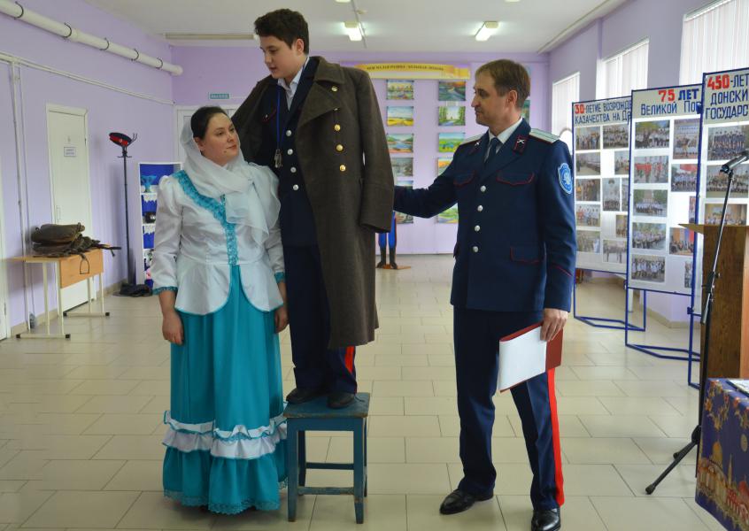 Демонстрация старинного казачьего обряда «Встань под шинель», который проводился в семьях, где погибали, либо умирали отцы, деды, а старшими оставались сыновья, начался с обращения казачки к атаману Усть-Белокалитвинского юрта Николаю Тимошенко, признать ее сына Владислава главой семьи. Старший сын в семье, принимая данный обряд, становился полноправным хозяином в доме. Испытания в знании истории казачества юный казак прошел достойно, на все вопросы Совета стариков дал правильные ответы и пообещал быть достойным защитником семьи. Героя поздравили сверстники и атаман школы.