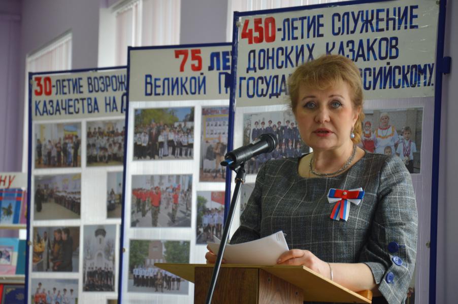 Обращаясь к школьникам Ольга Мельникова отметила, что молодое поколение должно всегда помнить, что мы - дети великого народа, имеющего свою многовековую историю и исторические традиции, которые необходимо помнить, свято чтить и передавать по наследству. В заключение мероприятия прозвучал гимн Всевеликого войска Донского