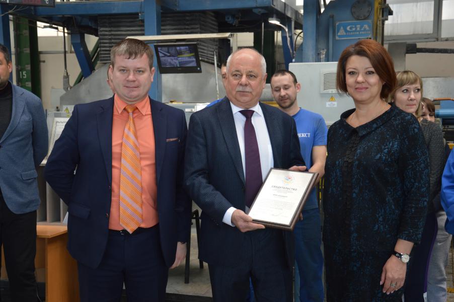 Следующим пунктом рабочей поездки стало посещение предприятий ООО «Алунекст», которое специализируется на производстве, окраске и продаже высококачественных тонкостенных алюминиевых профилей и ООО «Альтернатива» - производство муки пшеничной хлебопекарной высшего и первого сортов «Донской Мельник». Наталья Багрянова и Дмитрий Устименко торжественно вручили директорам предприятий ООО «Алунекст» Леониду Виноградскому и ООО «Альтернатива» Вячеславу Рыжкину свидетельства о присвоении знака соответствия системы добровольной сертификации «Сделано на Дону». Во второй раз предприятие ООО «Алунекст» получило областной знак качества «Сделано на Дону». Он присваивается лишь тем донским предприятиям, чья продукция отвечает самым строгим требованиям и стандартам качества, тем, кто добился признания и доверия широкого круга потребителей. Эти предприятия успешно прошли процедуру сертификации.