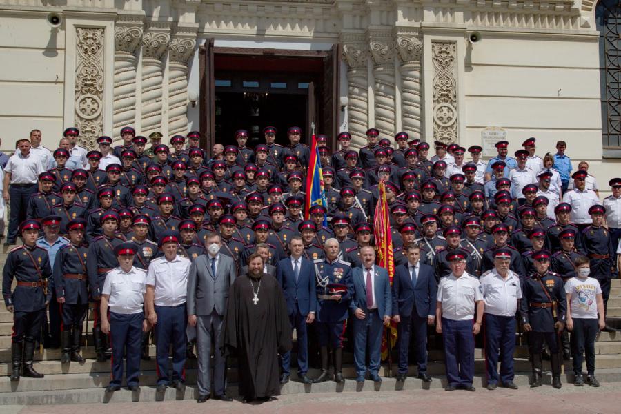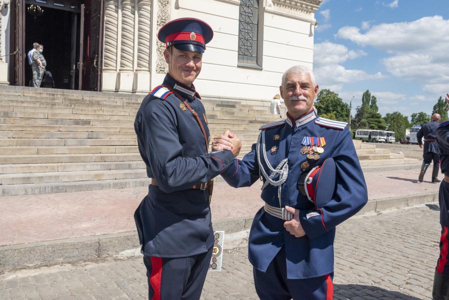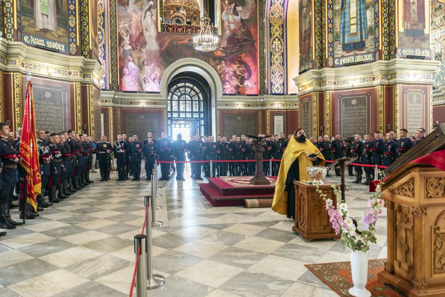 Настоятель храма, протоиерей Георгий Сморкалов обратился к участникам Парада Победы с поздравительной и напутственной речью, отметив, что казачий народ всегда был стоек к испытаниям и лишениям. После молебна в Вознесенском соборе протоирей Георгий Сморкалов вручил казакам именные благодарственные письма Войскового духовника.