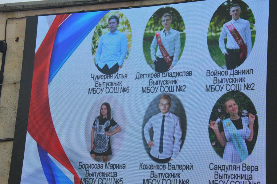 Медаль «За особые успехи выпускнику Дона» получили: Гончарова Анастасия - лауреат I степени Международного конкурса «Марш Победы», победитель Всероссийского конкурса сочинений «Спасибо тебе, солдат»; Никитина Елена и Никитина Софья-победители отборочного регионального этапа 12 Южно-Российской межрегиональной олимпиады школьников «Архитектура и искусство"; Гречкина Софья-призер регионального этапа Всероссийской олимпиады школьников в 2019-2020 учебном году. За отличные успехи в обучении и высокие показатели по результатам Единого Государственного экзамена отмечены 10 человек, среди них школьники, получившие более 90 баллов по русскому языку, истории, физики, а 2 ученика получили максимальное количество баллов (100) Крохин Данил-ученик школы №5 по физике и Болгаров Игорь- ученик школы №2 по химии.
