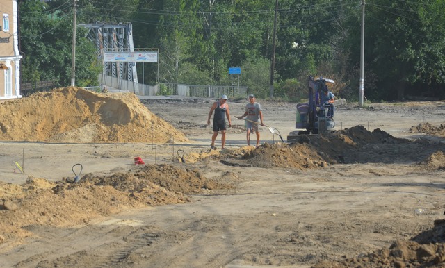 Работы в сквере «70 лет Победы» подрядчиком ведутся достаточно интенсивно, многое уже сделано. Выполнены демонтажные, земляные, бетонные работы, также полностью выполнена укладка плитки, завершается установка бортовых камней и поребрика. Ведутся работы по устройству лестниц, по прокладке сетей водоснабжения и канализации, сетей электроснабжения.