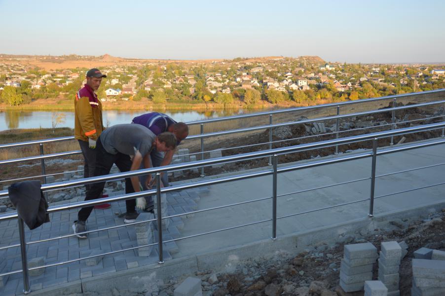 На данный момент готовность сквера «70 лет Победы» в мкр.Заречный составляет 70%. Прокладка всех важных сетей завершена, также выполнено устройство резинового покрытия спортивной площадки, установка перильных ограждений на спусках и пандусах, ведется устройство смотровых площадок. Глава Администрации района акцентировала внимание подрядчика, что следует приступить к озеленению территории. «Все мероприятия в сфере благоустройства, в первую очередь, делаются для жителей района, и очень важно, чтобы сквер был запоминающимся и радовал глаз», - подчеркнула Ольга Мельникова.