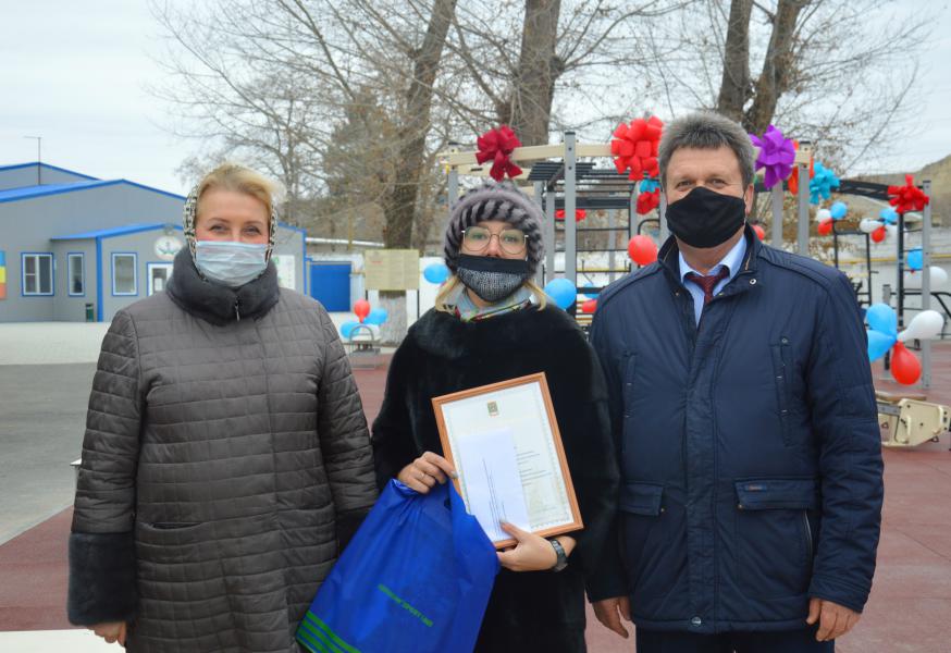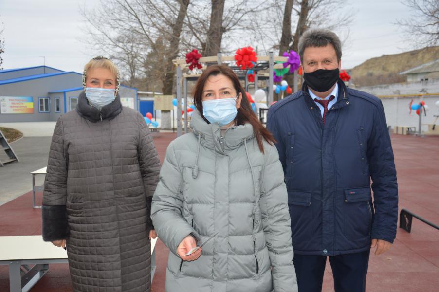 Глава Администрации района Ольга Мельникова и заместитель министра по физической культуре и спорту Ростовской области Игорь Злобин открыли спортивную площадку