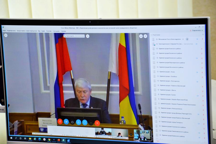 Открывая заседание в режиме видео-конференц-связи, заместитель Председателя Законодательного Собрания Ростовской области Вячеслав Василенко подчеркнул, что Ростовская область является территорией исторического проживания донских казаков. Именно здесь зародилось и развивалось на протяжении многих веков казачество.