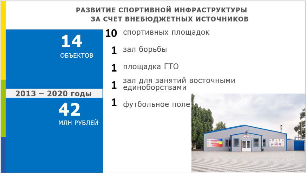 Сегодня, 27 января, на заседании Правительства Ростовской области глава Администрации Белокалитвинского района Ольга Мельникова выступила с докладом «О развитии инфраструктуры для занятий физической культурой и спортом в Белокалитвинском районе». Сейчас в районе работают 242 спортобъекта. По этому показателю Белокалитвинский район входит в первую пятерку среди муниципалитетов Ростовской области. За последние 5 лет на развитие спортивной инфраструктуры направлено более 348 млн. рублей бюджетных средств, в том числе почти 25 млн. рублей из федерального бюджета. Возведен и отремонтирован 31 спортивный объект, в том числе 2 плавательных бассейна, гребная база, шахматный клуб, 16 спортивных залов и 11 спортивных площадок. Сегодня в самом центре нашего города создан спортивный кластер, включающий комплекс спортивных сооружений в шаговой доступности: Дворец спорта с плавательными бассейнами, спортивными залами для игровых видов, бокса, скалолазания, художественной гимнастики, легкоатлетическим манежем и тренажерными залами; стадион с легкоатлетическим сектором и спортивными площадками, в том числе для сдачи нормативов комплекса ГТО; зал для борьбы дзюдо и самбо; шахматный клуб. Внедрению инновационных здоровьесберегающих технологий для формирования здорового образа жизни среди населения служит участие района в федеральном проекте «Формирование комфортной городской среды». В рамках проекта построен скейт-парк, установлены уличные тренажеры на четырех площадках в скверах города Белая Калитва. А в селе Литвиновка появилась многофункциональная спортивная площадка и уличные тренажеры. Благодаря личной поддержке Губернатора, депутатского корпуса и Правительства Ростовской области удалось значительно улучшить спортивную инфраструктуру Белокалитвинского района - в год прирост составляет в среднем 3 объекта. В планах на этот год - установить уличные тренажеры в поселках Шолоховский и Коксовый. В перспективе - проведение капитального ремонта стадиона «Калитва»