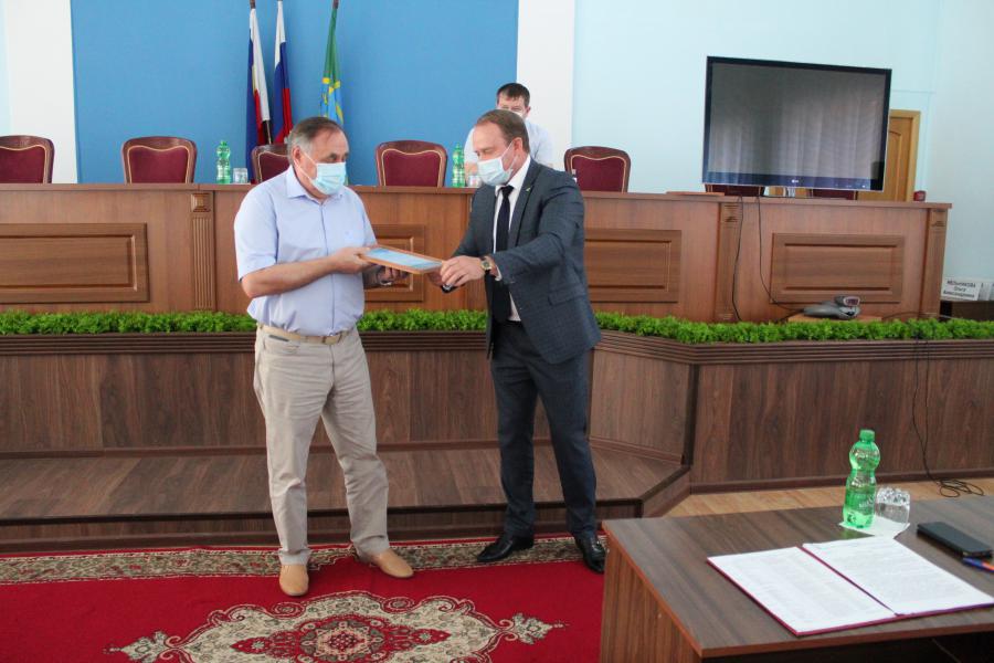 Перед началом заседания председатель Собрания депутатов Сергей Харченко вручил Почетные грамоты заместителям главного врача Центральной районной больницы – депутатам Владимиру Ковалеву и Алексею Ткачеву в связи с Днем медицинского работника.